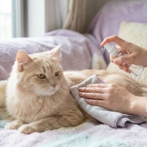 スプレーを直接かけるのではなく、「スプレーしたブラシでとかす」または「スプレーしたタオルで拭く」方法を推奨します。